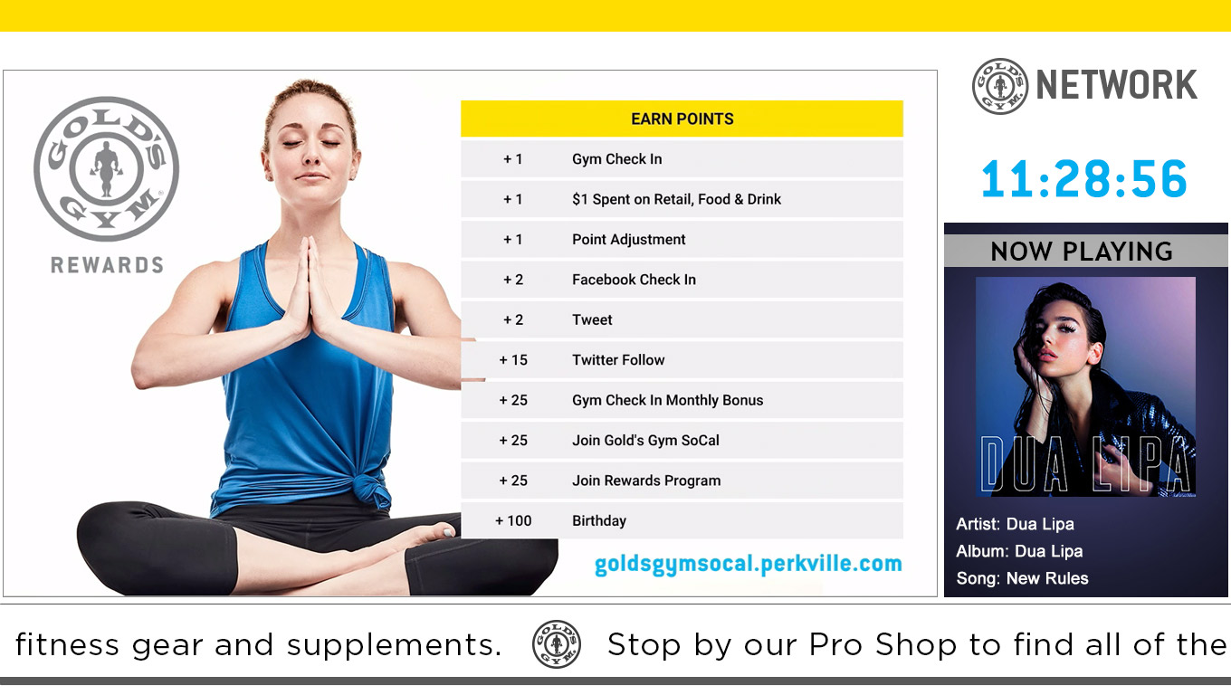 ClubCom offers its customers a complete in-club media solution, broadcasting high-definition music audio and video entertainment, member education segments, club promotions and advertising. Programming is broadcast through the facility’s overhead sound system and a portion of the televisions.