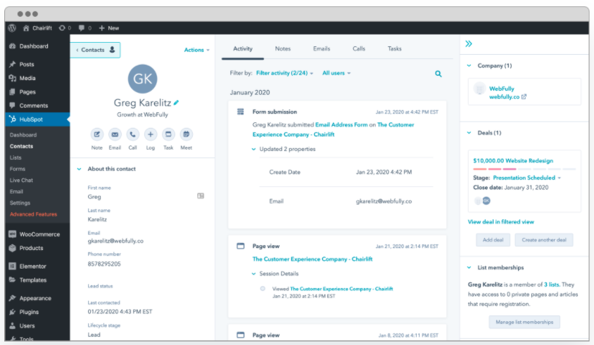 The HubSpot growth platform lets your entire company to work together -- from marketing, to sales, to customer service. Each Hub is powerful alone, but better together. Our CRM is free, because we believe your entire organization should be able to have a unified view of your customers. It’s the underlying database that powers each HubSpot product, and is the heart and soul of the software.